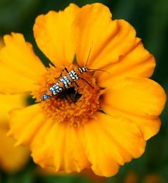 Keywords: ailanthus webworm moth atteva aurea moth insect bug orange flower yellow blooming summer bloom nature
