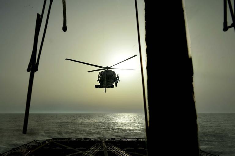 | Keywords: Air Force HH-60G Pave Hawk 140703-N-AT101-062.jpg en A U S Air Force HH-60G Pave Hawk helicopter assigned to the 56th Expeditionary Rescue Squadron prepares to land aboard the guided missile destroyer USS Nitze DDG 94 in the Mediterranean Sea July 3 2014 The Nitze was underway in the U S 6th Fleet area of responsibility supporting maritime security operations and theater security cooperation efforts U S Navy photo by Mass Communication Specialist 1st Class Maddelin Angebrand/Released 2014-07-03 Petty Officer 2nd Class Maddelin Angebrand https //www dvidshub net/image/1447758 140703-N-AT101-062 2014-07-14 20 01 USS NITZE DDG 94 AT SEA PD-USGov-Military-Navy USS Nitze DDG-94 Images from DoD uploaded by Fæ |
