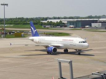 | Keywords: Airbus A320 HamburgAirways D-AHHF (1).jpg  en An Airbus A320-200 of Hamburg Airways with registration D-AHHF is rolling to the ramp at the airport of Bremen own Tvabutzku1234 2013-06-08 53 3 8 01 N 8 47 6 39 E region DE_heading WSW D-AHHF aircraft Cc-zero  |