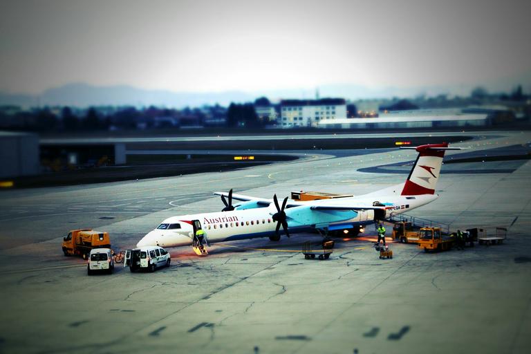 Keywords: aircraft airport fly passenger aircraft travel munich aviation air traffic tilt shift