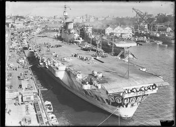 | Keywords: archives state records nsw staterecordsnsw newsouthwales blackandwhite aircraft carriers aircraftcarriers ships harbour wharf sydney woolloomooloo navy boats people ship warship hms indefatigable hmsindefatigable aircraft carrier aircraftcarrier warships royal navy royalnavy rn hms indefatigable (r10) hmsindefatigabler10 r10 implacable-class implacableclass monochrome outdoor photo border black and white Royal Navy HMS INDEFATIGABLE aircraft carrier at wharf Number 1 Woolloomooloo. At Wharf Numbers 6-9 Woolloomooloo can be seen two other Royal Navy large fleet aircraft carriers Dated: c.1946 Digital ID: 9856_a017000285 Rights: www.records.nsw.gov.au/about-us/rights-and-permissions We'd love to hear from you if you use our photos. Many other photos in our collection are available to view and browse on our website using Photo Investigator. Royal Navy HMS INDEFATIGABLE aircraft carrier at wharf Number 1 Woolloomooloo. At Wharf Numbers 6-9 Woolloomooloo can be seen two other Royal Navy large fleet aircraft carriers Dated: c.1946 Digital ID: 9856_a017000285 Rights: www.records.nsw.gov.au/about-us/rights-and-permissions We'd love to hear from you if you use our photos. Many other photos in our collection are available to view and browse on our website using Photo Investigator. |
