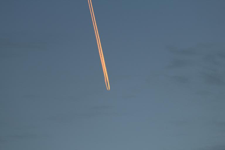 Keywords: aircraft contrail sky fly evening sky afterglow fire tail