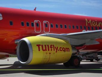 Keywords: aircraft detail engine travel organizer advertisement advertising go away travel airline travel holiday flyer fly red boeing 737 aviation flight