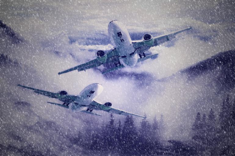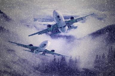 Keywords: aircraft flyer forest mountains landscape sky flight fog winter snowflakes