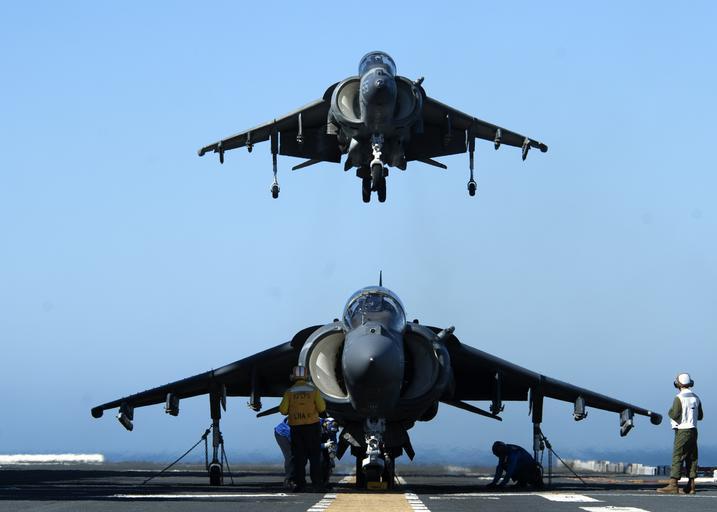 Keywords: aircraft landing planes jets military carrier flight deck harrier airplanes flying ship