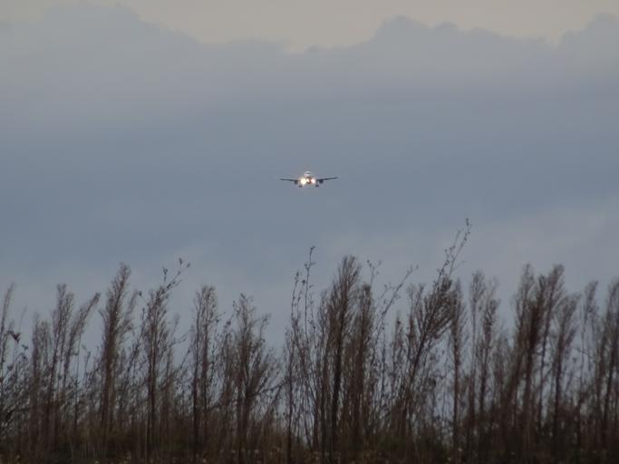 Keywords: aircraft landing spotlight evening clouds forward airport fly passenger machine air traffic tarmac wind