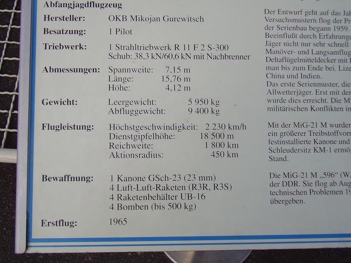 Keywords: Airforce Museum Berlin-Gatow 263.JPG Luftwaffenmuseum der Bundeswehr; Airforce Museum of the Bundeswehr; Berlin-Gatow MiG-21M Own 2007-08 RosarioVanTulpe Mikoyan-Gurevich MiG-21 at the Luftwaffenmuseum Berlin-Gatow