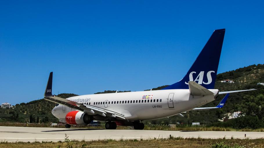 Keywords: airplane airport scandinavian airlines aircraft travel transportation jet departure vacation tourism summer greece skiathos