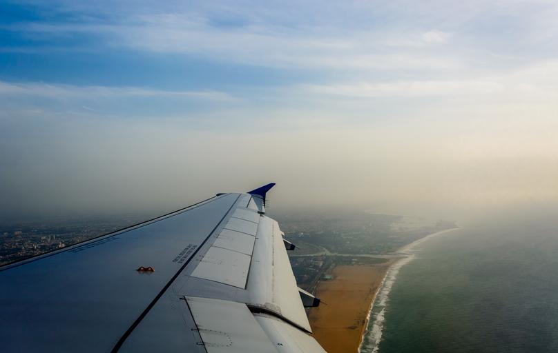 Keywords: airplane wing airplane window plane beach beach view aircraft travel transportation view fly window vacation blue flight sky white sea outdoors