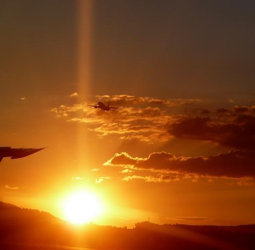 Keywords: airport aircraft sunset yellow orange cloud clouds summer sunny take off dark