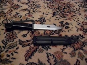 Keywords: Ak bayonett black open front.jpg en Avtomat Kalashnikov bayonet black out of sneak front East German 2<sup>nd</sup> Model AKM Bayonet de Avtomat Kalashnikov Bayonett schwarz freie klinge Vorderseite own RRT877 2010-08-20 AK bayonets
