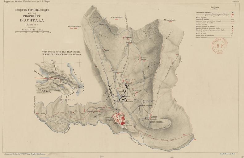 | Keywords: Akhtala map 1886.jpg fr Croquis topographiqe de la propriété d'Achtala Caucase <br /> Rapport sur les mines de cuivre de plomb et d'argent d'Achtala Caucase Signé J de Morgan en Akhtala map 1886 ka ახტალა და შემ გარე ი რუქა 1886 წელი 1886 ark /12148/bpt6k9325702/f55 image Morgan Jacques de 1857-1924 PD-old-70-1923 Uploaded with UploadWizard Akhtala 1886 maps 19th-century maps of Georgia Jacques de Morgan Akhtala monastery | ||||