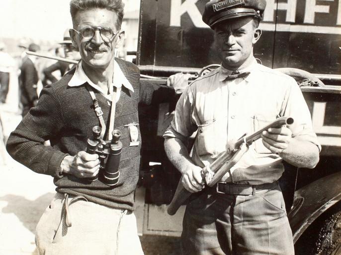 | Keywords: luke luqueer lukeluqueer aviation golden age goldenage fuel truck fueltruck fuel pimp fuelpimp fuel nozzle fuelnozzle fuel hose fuelhose richfield binoculars aviator national aeronatic association nationalaeronaticassociation naa timekeeper race car driver racecardriver auto racing autoracing joseph august nikrent josephaugustnikrent joseph a. nikrent josephanikrent j.a. nikrent janikrent joe nikrent joenikrent nikrent richfield gasoline richfieldgasoline richfield oil richfieldoil gasoline pump gasolinepump groupshot people From the Frank S. "Luke" Luqueer Photo Collection The Frank S. "Luke" Luqueer Photograph Collection is composed of 4 large albums covering from the 1920s to the 1950s. The albums contain historic photos and correspondences from many important historical figures such as Jack Frye, Pat Amelia Earhart, Wiley Post, Howard Hughes, Hap Arnold, Jimmy Doolittle, Art Goebel, Charles Lindbergh, Douglas McArthur, and Ruth Elder to name a few. Many of the images have been autographed. Frank Luqueer is a notable aviation photographer. He bought his first camera in 1903 and devoted much of his life to taking photos of historic personalities and events in aviation history. Repository: San Diego Air and Space Museum Archive From the Frank S. "Luke" Luqueer Photo Collection The Frank S. "Luke" Luqueer Photograph Collection is composed of 4 large albums covering from the 1920s to the 1950s. The albums contain historic photos and correspondences from many important historical figures such as Jack Frye, Pat Amelia Earhart, Wiley Post, Howard Hughes, Hap Arnold, Jimmy Doolittle, Art Goebel, Charles Lindbergh, Douglas McArthur, and Ruth Elder to name a few. Many of the images have been autographed. Frank Luqueer is a notable aviation photographer. He bought his first camera in 1903 and devoted much of his life to taking photos of historic personalities and events in aviation history. Repository: San Diego Air and Space Museum Archive |