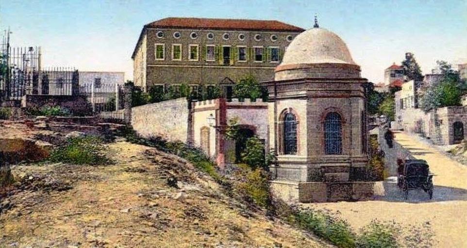 | Keywords: Al-Bashoura cemetery-Beirut.jpg ar مقبرة الباشورة أو تُربة سيدنا عمر كما كانت تُعرف، أقدم مقابير بيروت الباقية يظهر في الصورة ضريح والي سوريا أحمد حمدي باشا قبل أن يُنقل إلى داخل المقبرة بعد أن شُيِّد حولها سورٌ سنة 1892 en Al-Bashoura cemetery or as it was previously known our lord Umar cemetery The oldest remaining cemetery in Beirut The tomb of Ahmed Hamdi pasha Wali of Syria appears in the photo Today it is located inside the cemetery it self after a wall was built around it in 1892 before 1892 before the wall was built http //www yabeyrouth com/pages/index172 htm ya beyrouth History of Beirut author Custom license marker 2013 03 31 PD-old Lebanon in the 19th century Historical images of Beirut |