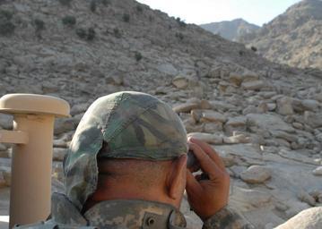 | Keywords: Ala Sai Operations DVIDS54145.jpg en Police mentors and the security forces assigned to protect them roll into Ala Sai along with the Afghan national army and Afghan national police to track down Taliban fighters Staff Sgt Vili Schwenke South Carolina National Guard scans the ridge line for any movement during a security halt 2007-08-11 Petty Officer 1st Class Scott Cohen https //www dvidshub net/image/54145 070811-N-+++++-072 2007-08-20 11 58 ALA SAI AF PD-USGov-Military-Navy South Carolina National Guard Images from DoD uploaded by Fæ |