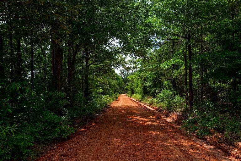 Keywords: alabama dirt road red clay landscape forest trees woods nature outdoors dense thick countryside rural hdr beautiful summer