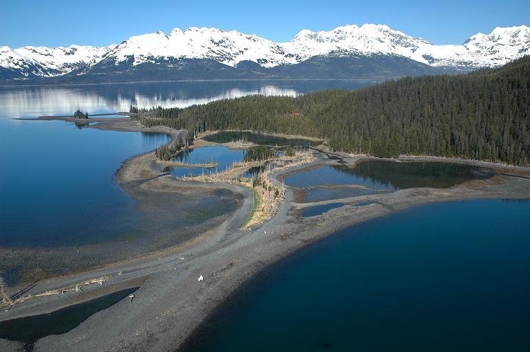 Keywords: alaska mountains sky clouds landscape forest trees snow ice bay harbor water shoreline reflections nature outside roads country countryside