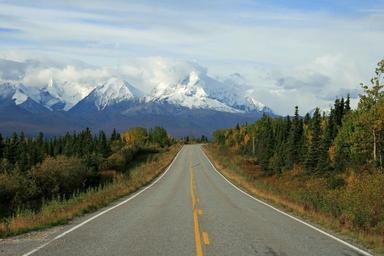 Keywords: alaska wilderness mountain forest landscape snow trees clouds road autumn fall fall color autumn colours