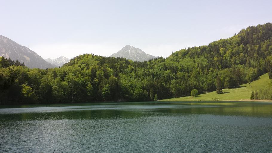 Keywords: alatsee allgäu idyll water still summer mountains nice weather scenic alpine more bergsee füssen tree nature idyllic