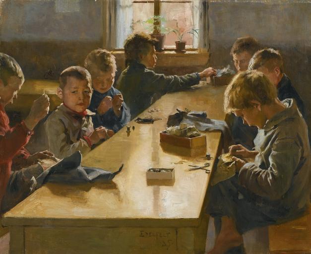 Keywords: Albert Edelfelt - The Boys’ Workhouse, Helsinki (1885).jpg Artwork creator Albert Edelfelt 1885 Oil canvas cm 45 55 object history credit line Edelfelt 85 ~ lower center signature and date accession number http //www sothebys com/en/auctions/ecatalogue/2013/european-paintings-l13101/lot 206 html Sotheby's London 2013 05 23 lot 206 PD-old-100-1923 1905 Paintings by Albert Edelfelt Workhouses Paintings of boys Images from Sotheby's