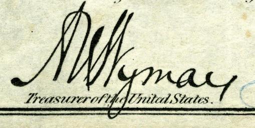 | Keywords: Albert Uriah Wyman (Engraved Signature).jpg en Engraved signature on U S Bank Notes “ paper currency 2012-12-26 Scanned by Godot13 Institution Smithsonian National Museum of American History Bureau of Engraving and Printing PD-USGov Signatures of U S Treasurers on United States Banknotes Wyman Albert Uriah National Numismatic Collection Banknote signatures scanned by User Godot13 | ||||