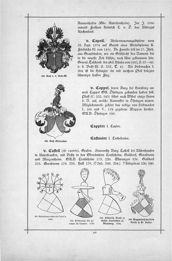 Keywords: Alberti Wappenbuch H03 S 0108.jpg S_0107 S_0109 von Capoll von Cappel Cappler Castanier von Castell Coats of arms of Cappel family Coats of arms of Castell family