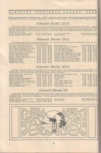 | Keywords: Albrecht's Fur Facts & Fashion 1912-13, Saint Paul, Minnesota -43.jpg Albrecht's Fur Facts Fashion 1912-13 Saint Paul Minnesota Albrecht's Fur Facts Fashion 1912-13 Saint Paul Minnesota - jpg 42 45 File Albrecht's Fur Facts Fashion 1912-13 Saint Paul Minnesota -44 jpg Collection Kuhn 1912 Albrecht's Fur Saint Paul Minnesota PD-old Albrecht's Fur Facts Fashion 1912-13 Saint Paul Minnesota Musquash fur advertising Mink fur advertising Kolinsky fur advertising Wolf fur advertising Skunk fur advertising Raccoon fur advertising Fox fur advertising Tibet lamb fur advertising Goat fur advertising Domestic dog fur advertising Opossum fur advertising Possum fur advertising Rabbit fur advertising Otter fur advertising Squirrel fur advertising Marmot fur advertising Karakul fur advertising Fur pieces advertising Hare fur advertising Ermine fur advertising |