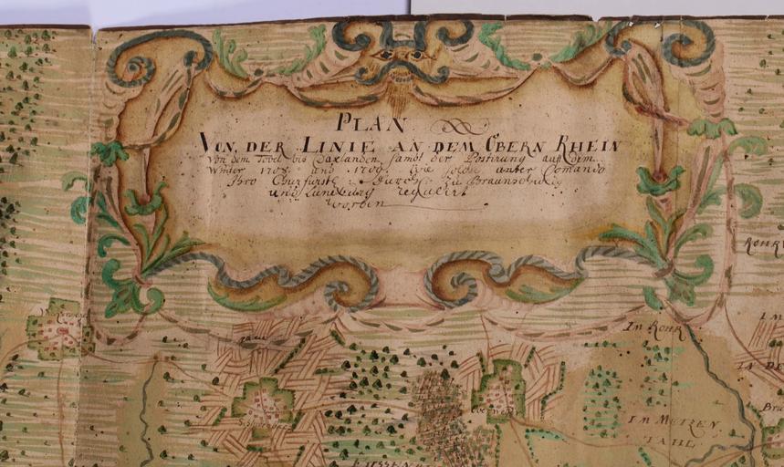 Keywords: Albtal-1708-Detail-oben.jpg Plan von der Linie an dem Obern Rhein von dem Tobel bis Daxlanden sambt der Postirung auff den Winter 1708 und 1709 wie solche unter Com m ando Ihro Churfurstl Durchl zu Braunschweig und Lüneburg regulirt worden Zeitgenöss aquarellierte Tuschfeder- u -pinselzeichnung von Joh Barendorf manu propria in Gitterform Ing fecit Mit 2 ornament u 3 1 montiert Vorhang- bzw Schriftrollenkart sowie großer Windrose Nordwestl orientierte Militärkarte des Albtals zwischen Pfortz Hardtwald Rüppurr heute Karlsruhe Spielberg u Dobel Ettlingen im Zentrum Mit Einzeichnung der während des Spanischen Erbfolgekriegs 1707 auf Befehl des damaligen Oberbefehlshabers der Rheinarmee dem Kurfürsten Georg Ludwig von Braunschweig-Lüneburg errichteten Ettlinger Linie von der Rheinniederung bis Dobel im Nordschwarzwald Diese Verteidigungsanlage bildete mit der sich anschließenden Schwarzwaldlinie einen Sperriegel gegen die von Süden her erwarteten franz Truppen unbekannt 1708 Joh Barendorf File Albtal-1708 jpg PD-old-100 Alb Northern Black Forest 18th-century maps of Baden-Württemberg Ettlinger Linie |