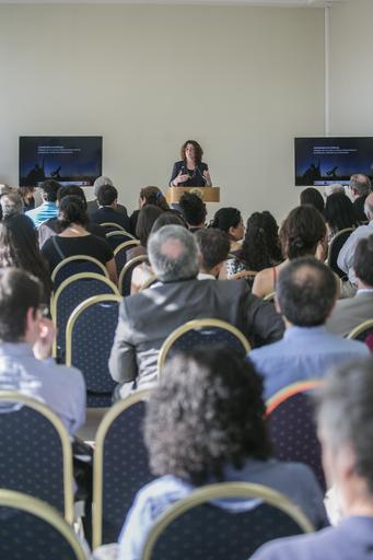 Keywords: room indoor “Alcanzando las Estrellas: Hallazgos de las Cumbres Chileno-Estadounidenses de Educación y Difusión de la Astronomía”, es el nombre del documento dado a conocer hoy y que representa el mayor esfuerzo nacional por coordinar estrategias en pos de potenciar la educación y difusión de la disciplina entre Chile y sus socios internacionales. Este informe sintetiza las ideas de más de cien expertos, representantes de 50 instituciones chilenas y extranjeras, que reconocieron el enorme potencial que posee Chile para convertirse en un referente mundial en educación y difusión pública de esta disciplina. Instituciones como los observatorios estadounidenses, conformados por AUI, AURA y Carnegie Institution for Science), la Embajada de Estados Unidos en Chile, CONICYT, Fundación Imagen de Chile y la Fundación Nacional de Ciencias de los Estados Unidos (NSF) participaron en las Cumbres Chileno-Estadounidenses de Educación y Difusión de la Astronomía. Para el año 2025 se proyecta que Chile poseerá el 75% de la capacidad de observación astronómica mundial. Con esta infraestructura no sólo se pueden responder preguntas que vinculan a la humanidad con el Universo, sino que el ser humano también es beneficiado educativamente en diversas áreas del saber. Para el embajador Gabriel Rodríguez, director de Energía, Ciencia y Tecnología e Innovación, del Ministerio de Relaciones Exteriores de Chile, “la astronomía no sólo permite responder preguntas sobre el origen de la vida y nuestro lugar en el cosmos, sino que además es una ciencia que nos acerca a la experiencia de transformar misterios ancestrales en conocimiento científico, a la vez que en saber cultural y sabiduría ciudadana, apropiados para hacer más humanos a todos los habitantes del planeta”. “El esfuerzo ofrecido por cada uno de los profesionales nacionales y extranjeros que aportaron generosamente su experiencia individual para agrupar los distintos puntos de vista de lo que está ocurriendo actualmente en materia de educación y difusión de la astronomía en Chile y el resto del mundo, constituye un recurso de gran utilidad para visibilizar buenas prácticas, y además favorece la futura colaboración entre quienes desarrollan iniciativas en esta área”, enfatizó el astrónomo Eduardo Hardy, que presentó el documento en representación de los observatorios estadounidenses. Las cumbres fueron visualizadas por los participantes como una oportunidad única para abordar, como comunidad, los problemas de coordinación y evaluación estratégica en la educación y difusión de la astronomía en Chile. Estas áreas de trabajo están desarrolladas en siete capítulos, y corresponden, por una parte, a la situación específica que experimenta en el plano nacional la educación y difusión de la astronomía en cinco campos ligados históricamente o en forma reciente con esta ciencia: la Educación Básica y Media; los planetarios, museos, centros de investigación y desarrollo científico y la educación no formal; los observatorios científicos internacionales; las universidades; y el astroturismo y los observatorios municipales y turísticos. Al final de cada capítulo se presenta un listado de recomendaciones y áreas de exploración futura, elaborado por cada grupo de trabajo. Las primeras se entienden como acciones concretas que, a juicio de los participantes, son posibles de implementar en el mediano y corto plazo. Las áreas de exploración futura, por su parte, corresponden a temas que requieren un mayor estudio y análisis antes de convertirse en recomendaciones factibles de ser implementadas. “Estamos conscientes que no sólo debemos centrar nuestra actividad en la entrega de fondos a los investigadores, para que lleven adelante proyectos a un nivel competitivo; también reconocemos la importancia y atractivo que despierta la disciplina en la sociedad. Por ello, pensamos que el rol de la astronomía en la educación de la ciencia debe transformarse en objetivo prioritario, en un tema clave para introducir un cambio”, comentó Christian Nicolai, director ejecutivo de CONICYT. Al finalizar la ceremonia, la profesora del Colegio Carlos Condell de la Haza, de La Serena, María Rebeca López, entregó a representantes de CONICYT el documento para que las recomendaciones y áreas de exploración que este texto incluye, sean puestas en acción con el respaldo de la principal institución pública del campo científico en Chile. "Estoy convencida que este documento será una brújula para nuestras autoridades a fin de potenciar y, ojala, priorizar a la astronomía como parte de nuestra identidad. Esta ciencia al alcance de mis estudiantes, contribuye e impulsa a que adquieran una visión mas amplia y enriquecedora del mundo en que les ha tocado vivir”, subrayó la docente. “Alcanzando las Estrellas: Hallazgos de las Cumbres Chileno-Estadounidenses de Educación y Difusión de la Astronomía”, es el nombre del documento dado a conocer hoy y que representa el mayor esfuerzo nacional por coordinar estrategias en pos de potenciar la educación y difusión de la disciplina entre Chile y sus socios internacionales. Este informe sintetiza las ideas de más de cien expertos, representantes de 50 instituciones chilenas y extranjeras, que reconocieron el enorme potencial que posee Chile para convertirse en un referente mundial en educación y difusión pública de esta disciplina. Instituciones como los observatorios estadounidenses, conformados por AUI, AURA y Carnegie Institution for Science), la Embajada de Estados Unidos en Chile, CONICYT, Fundación Imagen de Chile y la Fundación Nacional de Ciencias de los Estados Unidos (NSF) participaron en las Cumbres Chileno-Estadounidenses de Educación y Difusión de la Astronomía. Para el año 2025 se proyecta que Chile poseerá el 75% de la capacidad de observación astronómica mundial. Con esta infraestructura no sólo se pueden responder