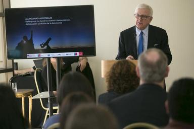 Keywords: indoor “Alcanzando las Estrellas: Hallazgos de las Cumbres Chileno-Estadounidenses de Educación y Difusión de la Astronomía”, es el nombre del documento dado a conocer hoy y que representa el mayor esfuerzo nacional por coordinar estrategias en pos de potenciar la educación y difusión de la disciplina entre Chile y sus socios internacionales. Este informe sintetiza las ideas de más de cien expertos, representantes de 50 instituciones chilenas y extranjeras, que reconocieron el enorme potencial que posee Chile para convertirse en un referente mundial en educación y difusión pública de esta disciplina. Instituciones como los observatorios estadounidenses, conformados por AUI, AURA y Carnegie Institution for Science), la Embajada de Estados Unidos en Chile, CONICYT, Fundación Imagen de Chile y la Fundación Nacional de Ciencias de los Estados Unidos (NSF) participaron en las Cumbres Chileno-Estadounidenses de Educación y Difusión de la Astronomía. Para el año 2025 se proyecta que Chile poseerá el 75% de la capacidad de observación astronómica mundial. Con esta infraestructura no sólo se pueden responder preguntas que vinculan a la humanidad con el Universo, sino que el ser humano también es beneficiado educativamente en diversas áreas del saber. Para el embajador Gabriel Rodríguez, director de Energía, Ciencia y Tecnología e Innovación, del Ministerio de Relaciones Exteriores de Chile, “la astronomía no sólo permite responder preguntas sobre el origen de la vida y nuestro lugar en el cosmos, sino que además es una ciencia que nos acerca a la experiencia de transformar misterios ancestrales en conocimiento científico, a la vez que en saber cultural y sabiduría ciudadana, apropiados para hacer más humanos a todos los habitantes del planeta”. “El esfuerzo ofrecido por cada uno de los profesionales nacionales y extranjeros que aportaron generosamente su experiencia individual para agrupar los distintos puntos de vista de lo que está ocurriendo actualmente en materia de educación y difusión de la astronomía en Chile y el resto del mundo, constituye un recurso de gran utilidad para visibilizar buenas prácticas, y además favorece la futura colaboración entre quienes desarrollan iniciativas en esta área”, enfatizó el astrónomo Eduardo Hardy, que presentó el documento en representación de los observatorios estadounidenses. Las cumbres fueron visualizadas por los participantes como una oportunidad única para abordar, como comunidad, los problemas de coordinación y evaluación estratégica en la educación y difusión de la astronomía en Chile. Estas áreas de trabajo están desarrolladas en siete capítulos, y corresponden, por una parte, a la situación específica que experimenta en el plano nacional la educación y difusión de la astronomía en cinco campos ligados históricamente o en forma reciente con esta ciencia: la Educación Básica y Media; los planetarios, museos, centros de investigación y desarrollo científico y la educación no formal; los observatorios científicos internacionales; las universidades; y el astroturismo y los observatorios municipales y turísticos. Al final de cada capítulo se presenta un listado de recomendaciones y áreas de exploración futura, elaborado por cada grupo de trabajo. Las primeras se entienden como acciones concretas que, a juicio de los participantes, son posibles de implementar en el mediano y corto plazo. Las áreas de exploración futura, por su parte, corresponden a temas que requieren un mayor estudio y análisis antes de convertirse en recomendaciones factibles de ser implementadas. “Estamos conscientes que no sólo debemos centrar nuestra actividad en la entrega de fondos a los investigadores, para que lleven adelante proyectos a un nivel competitivo; también reconocemos la importancia y atractivo que despierta la disciplina en la sociedad. Por ello, pensamos que el rol de la astronomía en la educación de la ciencia debe transformarse en objetivo prioritario, en un tema clave para introducir un cambio”, comentó Christian Nicolai, director ejecutivo de CONICYT. Al finalizar la ceremonia, la profesora del Colegio Carlos Condell de la Haza, de La Serena, María Rebeca López, entregó a representantes de CONICYT el documento para que las recomendaciones y áreas de exploración que este texto incluye, sean puestas en acción con el respaldo de la principal institución pública del campo científico en Chile. "Estoy convencida que este documento será una brújula para nuestras autoridades a fin de potenciar y, ojala, priorizar a la astronomía como parte de nuestra identidad. Esta ciencia al alcance de mis estudiantes, contribuye e impulsa a que adquieran una visión mas amplia y enriquecedora del mundo en que les ha tocado vivir”, subrayó la docente. “Alcanzando las Estrellas: Hallazgos de las Cumbres Chileno-Estadounidenses de Educación y Difusión de la Astronomía”, es el nombre del documento dado a conocer hoy y que representa el mayor esfuerzo nacional por coordinar estrategias en pos de potenciar la educación y difusión de la disciplina entre Chile y sus socios internacionales. Este informe sintetiza las ideas de más de cien expertos, representantes de 50 instituciones chilenas y extranjeras, que reconocieron el enorme potencial que posee Chile para convertirse en un referente mundial en educación y difusión pública de esta disciplina. Instituciones como los observatorios estadounidenses, conformados por AUI, AURA y Carnegie Institution for Science), la Embajada de Estados Unidos en Chile, CONICYT, Fundación Imagen de Chile y la Fundación Nacional de Ciencias de los Estados Unidos (NSF) participaron en las Cumbres Chileno-Estadounidenses de Educación y Difusión de la Astronomía. Para el año 2025 se proyecta que Chile poseerá el 75% de la capacidad de observación astronómica mundial. Con esta infraestructura no sólo se pueden responder preg