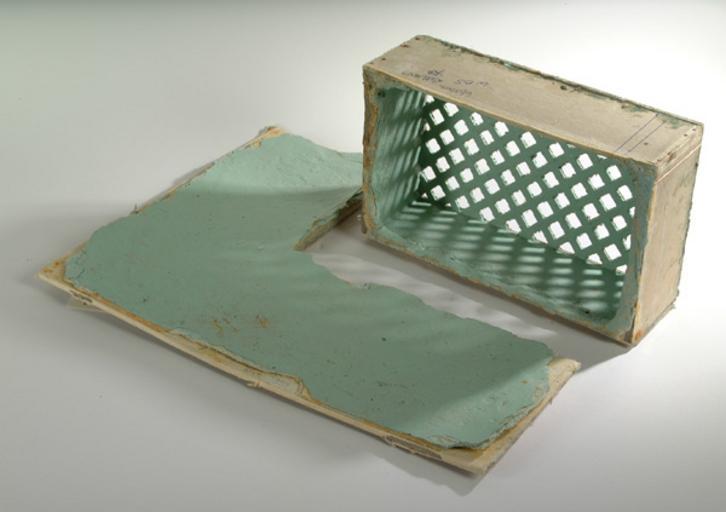 Keywords: Alcatraz 1962 false grid.jpg One of the false ventilator grilles that the Anglin Brothers and Frank Morris used to conceal holes they drilled in their cells It is shown here with the board from which it was cut The escapees climbed through the tunnel hole into the utility corridors behind their cells From there they climbed up to the roof of the cellhouse Canvas board soap paint metal L 25 W 16 H 9 cm Golden Gate National Recreation Area GOGA 356 http //www cr nps gov/museum/exhibits/alca/exb/FederalPrison/Inmates/Escapes/1962Escape/goga356_grill_fake2_exb html PD-USGov June 1962 Alcatraz escape |