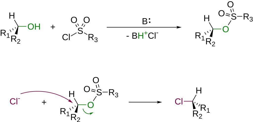 | Keywords: Alcohols - 8 (mesylation-halogenation).svg en Convertion of alcohols into alkylchlorides by convertion into sulfonic ester and subsequent substitution ru П ев ащение спи тов в алкилхло иды че ез п омежуточное об азование эфи ов сульфокислот и последующее замещение own Жо а Ковский 2010-06-02 Organic reactions Organic syntheses Reaction mechanisms |