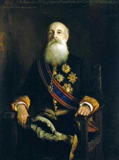 | Keywords: Alejandro Pidal y Mon. (Congreso de los Diputados de España).jpg Retrato del político español Alejandro Pidal y Mon 1846-1913 que llegó a ser ministro de Fomento en 1884 durante uno de los mandatos de Antonio Cánovas del Castillo miembro y director de la Real Academia Española numerario de la Real Academia de la Historia presidente del Congreso de los Diputados y embajador de España ante la Santa Sede También fue caballero de la Orden del Toisón de Oro y caballero gran cruz de la Orden de San Gregorio Magno 1912 oil canvas Size cm Institution Palacio de las Cortes Madrid http //www congreso es/portal/page/portal/Congreso/Congreso/Diputados/BusqForm _piref73_1333155_73_1333154_1333154 next_page /wc/imagenesPresidentes idPresidente 89400 codHistorico H object history exhibition history credit line accession number http //2 bp blogspot com/-uroqO1cHC7Y/VkDbmp3-RxI/AAAAAAAATPg/VHGxpYp42EQ/s1600/Luis 2BMen 25C3 25A9ndez 2BPidal 252C3 jpg PD-old-100 Alejandro Pidal y Mon Male portrait paintings by Luis Menéndez Pidal Portrait paintings by Luis Menéndez Pidal in the Palacio de las Cortes 19th-century portrait paintings in the Palacio de las Cortes 1912 paintings in Spain Uploaded with UploadWizard |