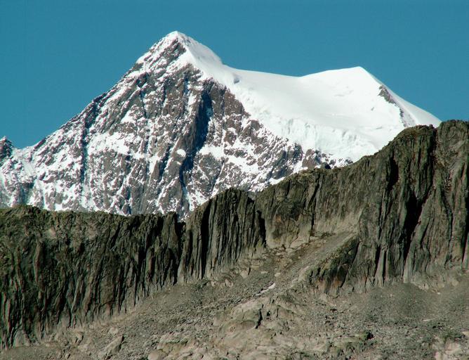 Keywords: Aletschhorn east.jpg en Aletschhorn Bernese Alps Own Fiesch 2008-08-29 Aletschhorn Snow in Switzerland