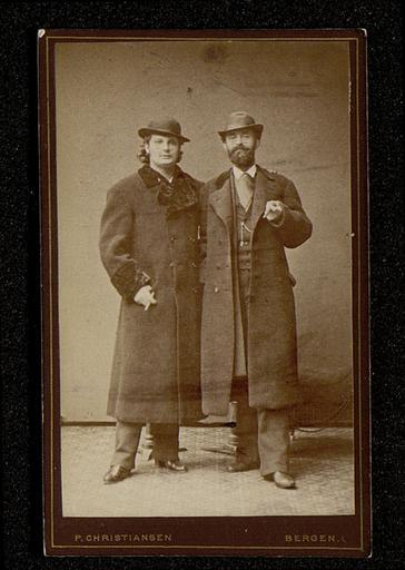| Keywords: ole bull olebull vintage black and white blackandwhite historic norway alexander bull alexanderbull hat long coats longcoats people photo border picture frame monochrome black and white Artist: P. Christiansen Date/place: Bergen Subject: Alexander Bull with friend Medium: photographic positive Notes: none Persistent URL: Title number:Valestrand 008 Original belongs to Knut Hendriksen's private collection at Valestrand - scan by Statsarkivet in Bergen Artist: P. Christiansen Date/place: Bergen Subject: Alexander Bull with friend Medium: photographic positive Notes: none Persistent URL: Title number:Valestrand 008 Original belongs to Knut Hendriksen's private collection at Valestrand - scan by Statsarkivet in Bergen |