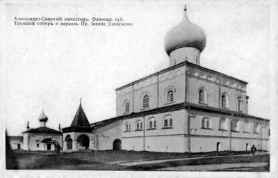 Keywords: Alexander-Svirsky Monastery.jpg Alexander-Svirsky Monastery Trinity Cathedral and Church of Saint John of Damascus Pre-1917 postcard originally posted to Flickr as http //flickr com/photos/26244825 N05/4459108470 Alexander-Svirsky Monastery 2010-03-24 12 54 53 http //flickr com/photos/26244825 N05 Ruslan PD-old-100 Holy Trinity Church Alexandro-Svirsky Monastery Saint John of Damascus Church Alexandro-Svirsky Monastery 1905 photographs Uploads by Massalim |