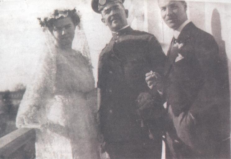| Keywords: Alexandra Horwat - Edward Horwat - Stanislaw Wankowicz - Rudakou in Belarus - 1909 AD.jpg  en belorussian noblemen from the left Alexandra Horwat 1895 1943 Edward Horwat 1866 1935 Stanislaw Wankowicz 1885 1943 Photoed in Rudakou village Russian empire Minsk region 1909 AD ru слева - нап аво Александ а Эдва довна Го ват 1895-1943 Эдва д А ту ович Го ват 1866-1935 Станислав Станиславович Ванькович 1885-1943 Фото сделано в 1909 г во в емя свадьбы Станислава Ваньковича с Александ ой Го ват в де евне Рудаков Речицкий уезд  инская губе ния Российская импе ия be злева - нап ава Аляксанд а Эдва даўна Го ват 1895 1943 Эдва д А ту авіч Го ват 1866 1935 Станіслаў Станіслававіч Ваньковіч 1885 1943 Фота з облена ў 1909 г падчас вяселля Станіслава Ваньковіча з Аляксанд ай Го ват у вёсцы Рудакоў Рэчыцкі павет  інская губе ня Расійская імпе ыя reproduction from the book Ваньковичи / Депа тамент по а хивам и делоп оизводству  инисте ства юстиции Республики Бела усь и д ; сост  А Голубева   Усова Л В Языкович ; под научной  едакцией В И П окопцова   инск БелЭн 2012  442 с author 1909 Horwat family Wańkowicz family Rudakou PD-old  |