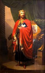 | Keywords: Alfonso IV el Monje, rey de León (Museo del Prado).jpg  Retrato imaginario del rey Alfonso IV de León   933 Fue hijo del rey Ordoño II de León y de la reina Elvira Menéndez Fue coronado en el año 926 y renunció al trono tras la muerte de su esposa la reina Oneca de Pamplona Tras su abdicación ingresó como religioso en el monasterio de Sahagún pero intentó recuperar el trono leonés y su hermano Ramiro II de León que ya reinaba en su lugar le capturó y ordenó que fuera cegado Falleció en el año 933 en el desaparecido monasterio de San Julián y Santa Basilisa de Ruiforco ~ 1851 oil on canvas Size cm 140 225 Institution Museo del Prado Depositado en el Museo de Covadonga Asturias https //www museodelprado es/coleccion/obra-de-arte/alfonso-iv/886c2ee5-326f-4657-ac24-8311dd7129cd searchid 6fbeb1e4-42f0-9b99-af8a-353d01537dac accession number P06403 https //content3 museodelprado es/imagenes/Documentos/imgsem/88/886c/886c2ee5-326f-4657-ac24-8311dd7129cd/6c741935-e844-41d2-950d-eba66cefb041 jpg PD-old-100 Alfonso IV of León Paintings by Eduardo Cano de la Peña in the Prado Museum Spanish 19th-century paintings in the Museo del Prado Chronological series of Kings of Spain commissioned by Isabella II 1851 paintings in Spain Paintings in the Museo de Covadonga |