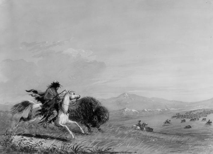 Keywords: Alfred Jacob Miller - Pawnee Running Buffalo - Walters 371940121.jpg between 1858 1860 watercolor paper cm 21 29 7 accession number 37 1940 121 5002 William T Walters Baltimore 1858-1860 by commission Henry Walters city Baltimore Walters Art Museum Henry Walters Commissioned by William T Walters 1858-1860 Monogram Lower left AJMiller Alfred Jacob Miller and the Western Indians The Walters Art Museum Baltimore 2006 place of origin USA Walters Art Museum license 2D 19th-century watercolor paintings in the United States Bisons in art Horses of Native Americans in art Hunting by horse in paintings Paintings of Native Americans by Alfred Jacob Miller Paintings by Alfred Jacob Miller in the Walters Art Museum |
