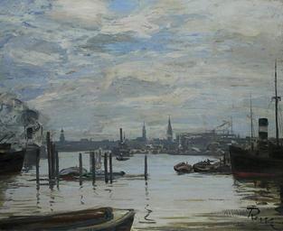 Keywords: Alfred Renz Hamburger Hafen.jpg Alfred Renz 1877 “1930 German painter technique oil canvas cm 62 75 5 http //www hampel-auctions com/ PD-old-auto 1930 Port of Hamburg in art Hafen Alfred Renz Hamburger Hafen Images from Hampel Auctions Remote views of St Michaelis Hamburg 1930 |