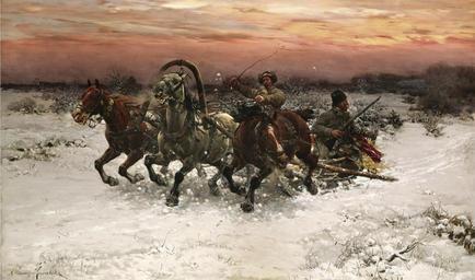 | Keywords: Alfred Wierusz-Kowalski - Trojka ścigana przez wilki.jpg Artwork Creator Alfred Wierusz-Kowalski de Eine Troika wird von Wölfen verfolgt en Troika pursued by wolves oil canvas cm 72 5 119 0 http //www sothebys com/de/ecat pdf L08101 html/f/21/L08101-21 pdf by Sotheby's PDF object history Provenance Acquired by the family of the present owner in the 1950s; thence by descent credit line signed A Wierusz-Kowalski lower left accession number http //www sothebys com/de/catalogues/ecatalogue html/2008/european-paintings-including-german-austrian-central-european-paintings-and-the-orientalist-sale-l08101 /r /de/ecat fhtml L08101 html+r m /de/ecat lot L08101 html/21/ Sotheby's PD-old-auto-1923 1915 Paintings by Alfred Wierusz-Kowalski Paintings of troikas Paintings of wolves Images from Sotheby's |