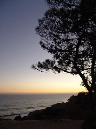 Keywords: algarve sunset holiday evening tree silhouette portugal maritime coast rest ocean romance relaxation sea