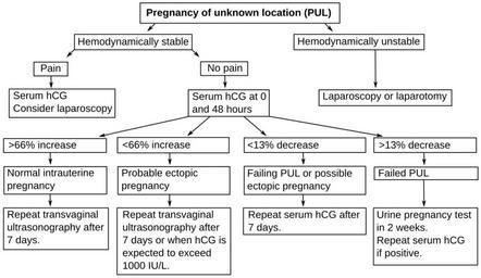 | Keywords: Algorithm in pregnancy of unknown location.svg Algorithm of the management of pregnancy of unknown location <P> Reference cite journal Kirk E Bottomley C Bourne T Diagnosing ectopic pregnancy and current concepts in the management of pregnancy of unknown location Hum Reprod Update 20 2 250 “61 2014 24101604 10 1093/humupd/dmt047 2014-04-20 17 37 51 own Mikael Häggström thumb left png-format cc-zero Uploaded with UploadWizard Medical algorithms Check categories 2015 May 2 Ectopic pregnancy |