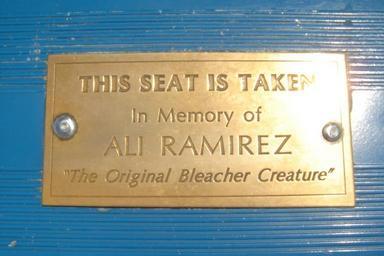 Keywords: Ali Ramirez Plaque 2.jpg en Close up of the plaque dedicated to Ali Ramirez in the old Yankee Stadium Section 39 Row A Seat 29 Own Sportskido8 2004-08-05 Yankee Stadium 1923 Bleachers Memorial seats