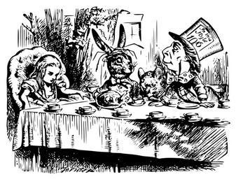 Keywords: alice in wonderland tea party carroll mad fiction cartoon drawing depiction alice wonderland tea party cup drink