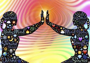 Keywords: alive energy divine body-mind mind-body faith silhouette life emoji source temple shrine body women woman silhouette freedom happiness healthy joy radiance symbol icons nature connection sharing reflecting mirror images females feminine waves colorful mystical magical