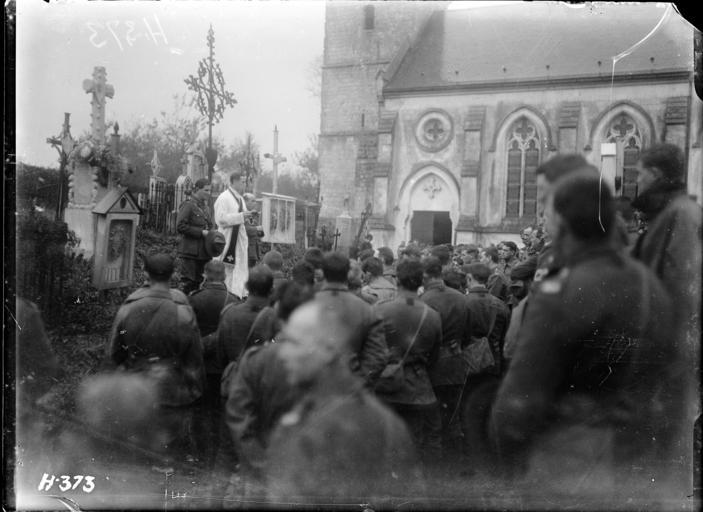 | Keywords: blackandwhite monochrome black and white All Souls Day memorial funeral burial service to commemorate the New Zealand fallen, in the churchyard of St Martin's, Selles, Pas de Calais, France. Shows priests officiating and soldiers looking on. Photograph taken 5 November 1917 by Henry Armytage Sanders. Inscriptions: Inscribed - Photographer's title on negative -bottom left: H373. The burial service followed a requiem mass inside the church. Quantity: 1 b&w original negative(s). Physical Description: Dry plate glass negative 4.75 x 6.5 inches    All Souls Day memorial funeral burial service, in the churchyard of St Martin's, Selles, Pas de Calais, France. Royal New Zealand Returned and Services' Association :New Zealand official negatives, World War 1914-1918. Ref: 1/2-013007-G. Alexander Turnbull Library, Wellington, New Zealand. natlib.govt.nz/records/22855602 All Souls Day memorial funeral burial service to commemorate the New Zealand fallen, in the churchyard of St Martin's, Selles, Pas de Calais, France. Shows priests officiating and soldiers looking on. Photograph taken 5 November 1917 by Henry Armytage Sanders. Inscriptions: Inscribed - Photographer's title on negative -bottom left: H373. The burial service followed a requiem mass inside the church. Quantity: 1 b&w original negative(s). Physical Description: Dry plate glass negative 4.75 x 6.5 inches    All Souls Day memorial funeral burial service, in the churchyard of St Martin's, Selles, Pas de Calais, France. Royal New Zealand Returned and Services' Association :New Zealand official negatives, World War 1914-1918. Ref: 1/2-013007-G. Alexander Turnbull Library, Wellington, New Zealand. natlib.govt.nz/records/22855602 |