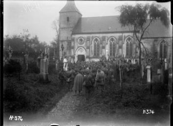 | Keywords: blackandwhite monochrome outdoor black and white All Souls Day memorial funeral burial service to commemorate the New Zealand fallen, in the churchyard of St Martin's, Selles, Pas de Calais, France. Shows service being conducted with soldiers standing in front of priests. The church is in the background. Photograph taken 5 November 1917 by Henry Armytage Sanders. Inscriptions: Inscribed - Photographer's title on negative -bottom left: H374. The burial service followed a requiem mass inside the church. Quantity: 1 b&w original negative(s). Physical Description: Dry plate glass negative 4.75 x 6.5 inches    All Souls Day memorial funeral burial service, in the churchyard of St Martin's, Selles, Pas de Calais, France. Royal New Zealand Returned and Services' Association :New Zealand official negatives, World War 1914-1918. Ref: 1/2-013008-G. Alexander Turnbull Library, Wellington, New Zealand. natlib.govt.nz/records/22851956 All Souls Day memorial funeral burial service to commemorate the New Zealand fallen, in the churchyard of St Martin's, Selles, Pas de Calais, France. Shows service being conducted with soldiers standing in front of priests. The church is in the background. Photograph taken 5 November 1917 by Henry Armytage Sanders. Inscriptions: Inscribed - Photographer's title on negative -bottom left: H374. The burial service followed a requiem mass inside the church. Quantity: 1 b&w original negative(s). Physical Description: Dry plate glass negative 4.75 x 6.5 inches    All Souls Day memorial funeral burial service, in the churchyard of St Martin's, Selles, Pas de Calais, France. Royal New Zealand Returned and Services' Association :New Zealand official negatives, World War 1914-1918. Ref: 1/2-013008-G. Alexander Turnbull Library, Wellington, New Zealand. natlib.govt.nz/records/22851956 |