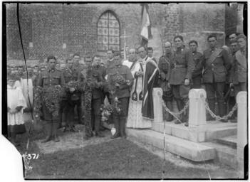 | Keywords: blackandwhite monochrome photo border black and white All Souls Day memorial funeral burial service to commemorate the New Zealand fallen, in the churchyard of St Martin's, Selles, Pas de Calais, France. Shows soldiers holding floral tributes of the letters 'NZ' with the village eure (a floral cross) in between. Photograph taken 5 November 1917 by Henry Armytage Sanders. Inscriptions: Inscribed - Photographer's title on negative -bottom left: H371. The burial service followed a requiem mass inside the church. Quantity: 1 b&w original negative(s). Physical Description: Dry plate glass negative 4.75 x 6.5 inches    All Souls Day memorial funeral burial service, in the churchyard of St Martin's, Selles, Pas de Calais, France. Royal New Zealand Returned and Services' Association :New Zealand official negatives, World War 1914-1918. Ref: 1/2-013005-G. Alexander Turnbull Library, Wellington, New Zealand. natlib.govt.nz/records/23082759 All Souls Day memorial funeral burial service to commemorate the New Zealand fallen, in the churchyard of St Martin's, Selles, Pas de Calais, France. Shows soldiers holding floral tributes of the letters 'NZ' with the village eure (a floral cross) in between. Photograph taken 5 November 1917 by Henry Armytage Sanders. Inscriptions: Inscribed - Photographer's title on negative -bottom left: H371. The burial service followed a requiem mass inside the church. Quantity: 1 b&w original negative(s). Physical Description: Dry plate glass negative 4.75 x 6.5 inches    All Souls Day memorial funeral burial service, in the churchyard of St Martin's, Selles, Pas de Calais, France. Royal New Zealand Returned and Services' Association :New Zealand official negatives, World War 1914-1918. Ref: 1/2-013005-G. Alexander Turnbull Library, Wellington, New Zealand. natlib.govt.nz/records/23082759 |