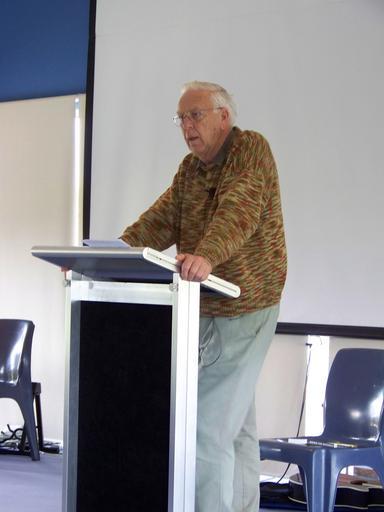 Keywords: Allan Harman.jpg en Allan Harman speaking at the Presbyterian Church of Victoria's Ministry Family Camp Phillip Island 2010 own StAnselm 2010-09-22 Protestant theologians Presbyterians from Australia Old Testament scholars